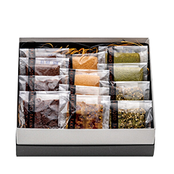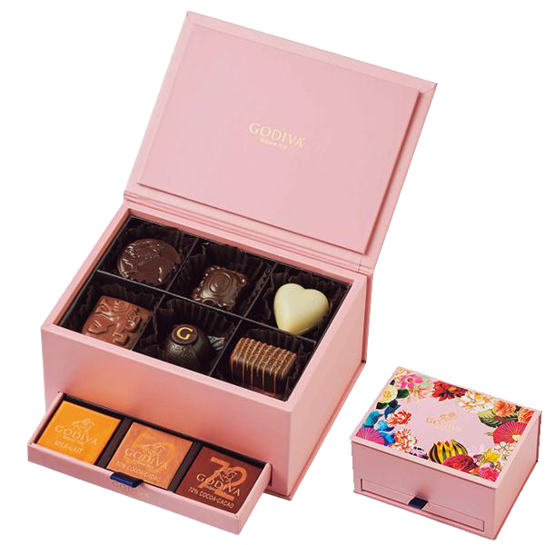 大人の余裕と、遊び心を感じるチョコレート。高級感あふれる華やかなボックスに詰め合わせました。