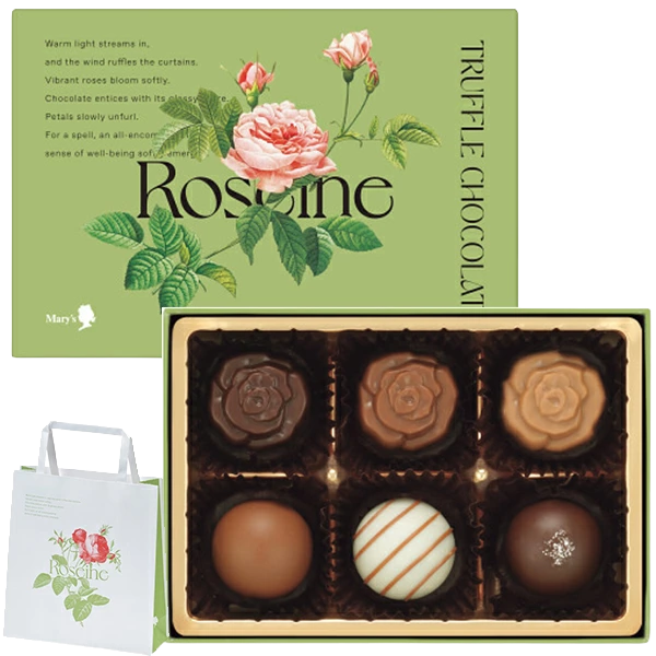 くちどけなめらかなトリュフチョコレートと、カカオ感の異なる薔薇の形のプレーンチョコレートの詰め合わせ。